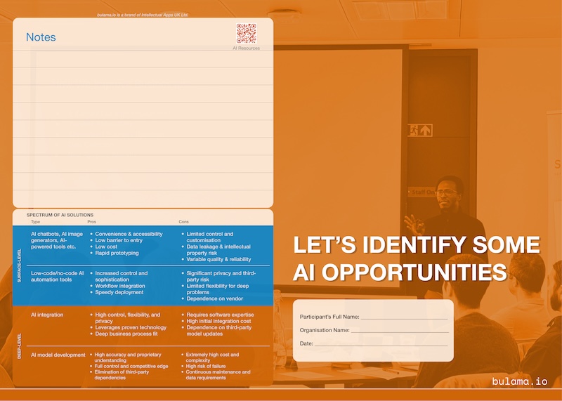 Going through this exercise helps business leaders think about how they can utilise AI in a way that adds value and supports governance within their business.