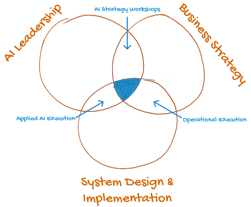 Most consultants excel in one domain. The problem? Real business transformation requires all three. At the intersection of AI Leadership, Business Strategy, and System Design & Implementation, I bring a unique combination of skills that helps businesses move from ambitious ideas to measurable outcomes.
